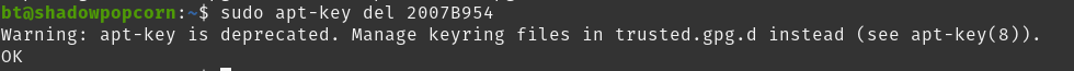 sudo apt-key del 2007B954